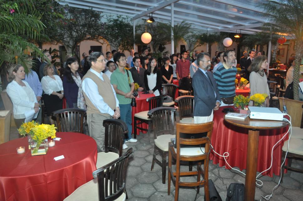 Na primeira fila da esq. para dir.: prof. Luiz Carlos Scavarda do Carmo (FIS, Vice-Reitor para Assuntos Administrativos), n.i., prof. Paulo Fernando Carneiro de Andrade (TEO, decano do CTCH), prof. Fred Palmeira (Carlos Frederico Borges Palmeira) (MAT), n.i.