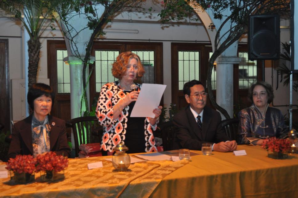 Da esq. para a dir.: Chen Xiaoling (cônsul-geral da China no Brasil), profa. Rosa Marina de Brito Meyer (LET), Wang Junxiang (vice-reitor da Universidade de Hebei), Silvia Beatriz Alexandra Becher Costa (LET)