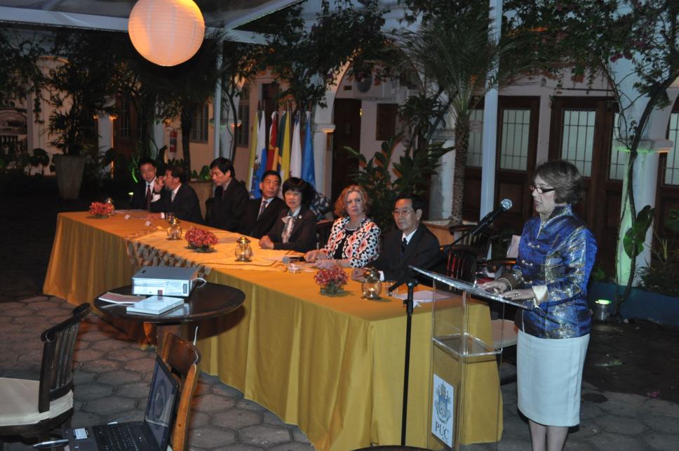 Da esq. para a dir.: Guo Fuliang (diretor do Instituto Confucius), prof. Júlio Cesar Valladão Diniz (LET), Zheng Kejun (conselheiro Cultural da Embaixada da China no Brasil), Yan Chunlai (vice-diretor da Secretaria de Educação de Hebei), Chen Xiaoling (cônsul-geral da China no Brasil), profa. Rosa Marina de Brito Meyer (LET), Wang Junxiang (vice-reitor da Universidade de Hebei), Silvia Beatriz Alexandra Becher Costa (LET).