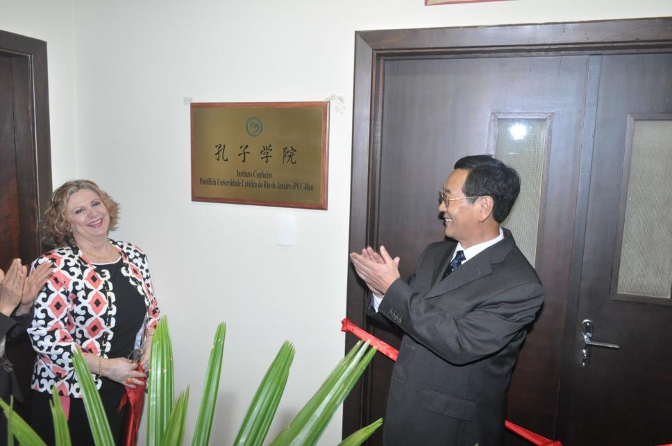 Da esq. para a dir. profa. Rosa Marina de Brito Meyer (LET), Wang Junxiang (vice-reitor da Universidade de Hebei)
