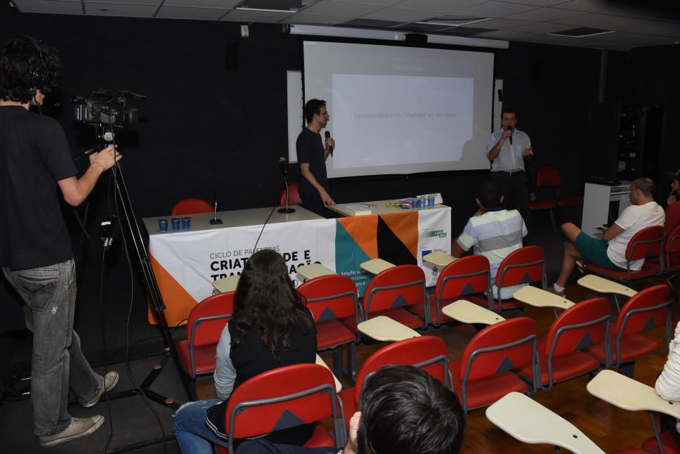 Palestrantes mostram suas ideias aos alunos.