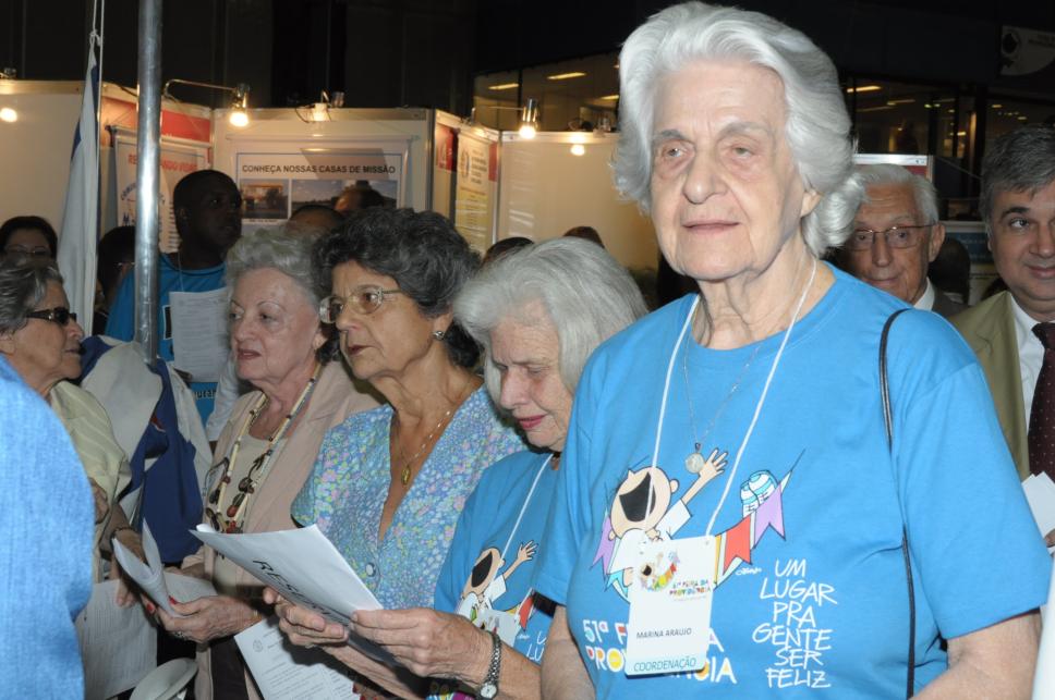 A coordenadora da Feira, Mariana Araújo, acompanha a missa realizada por Dom Orani Tempesta O. Cist..