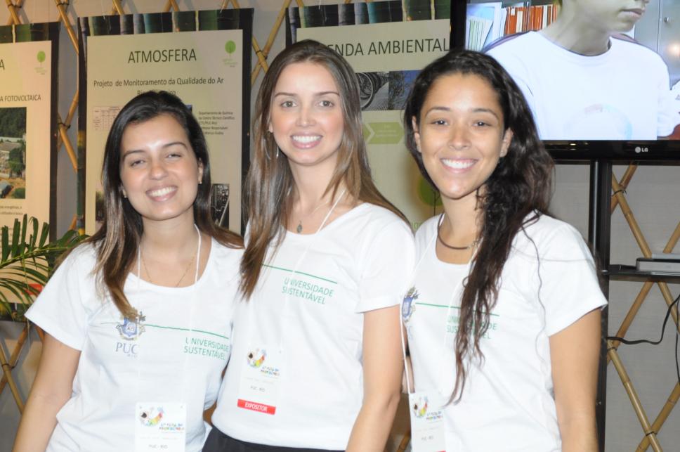 Funcionárias da Coordenação de Atividades Comunitárias e Culturais da PUC-Rio, no estande da universidade.