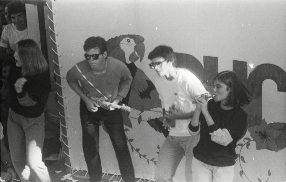 Alunos se apresentam no palco.