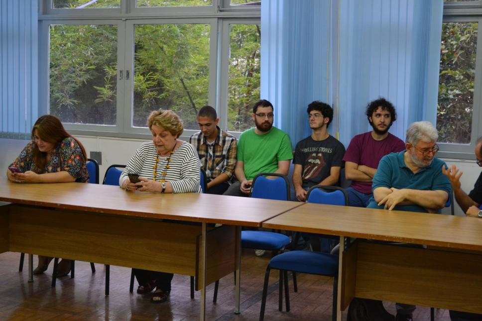 Da esq. a dir.: 2º profa. Margarida de Souza Neves(Núcleo de Memória), 3º prof. Ricardo Augusto Benzaquen de Araújo (HIS), 4º aluno Matheus Lima Targuêta (Núcleo de Memória,HIS), 6º aluno Rodrigo Lauriano Soares (Núcleo de Memória, HIS) 7º aluno André Mesquita Penna-Firme (Núcleo de Memória, HIS)