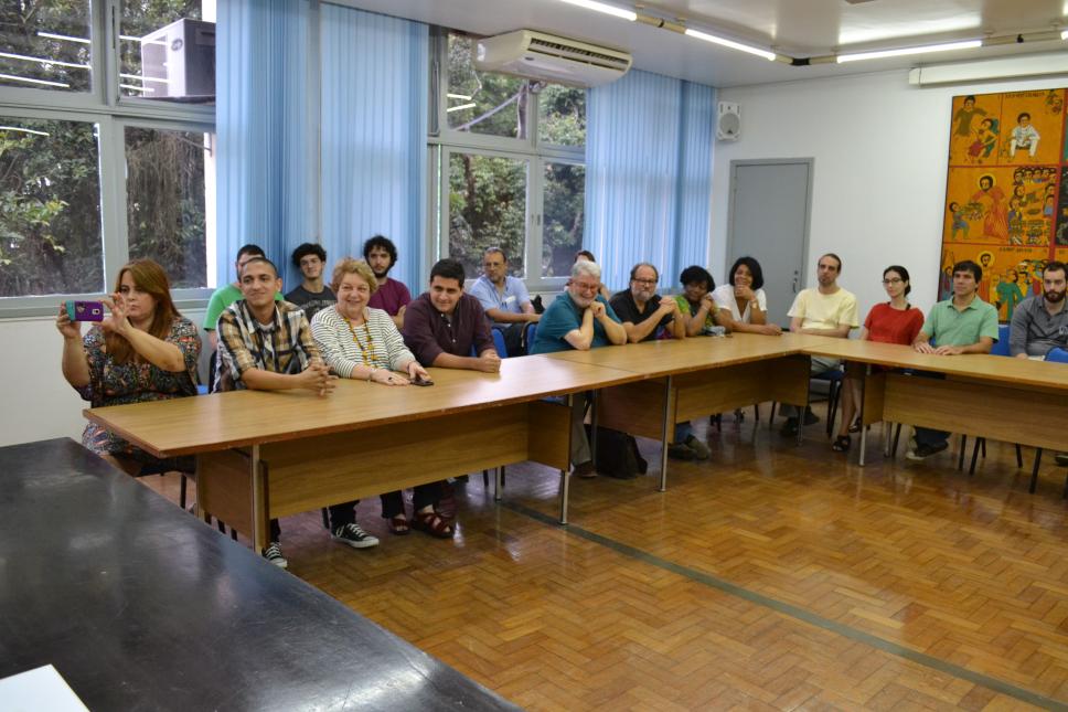 Da esq. a dir.: 2º aluno Matheus Lima Targuêta (Núcleo de Memória, HIS), 3º prof. Margarida de Souza Neves (Núcleo de Memória), 5º prof. Ricardo Augusto Benzaquen de Araújo (HIS)