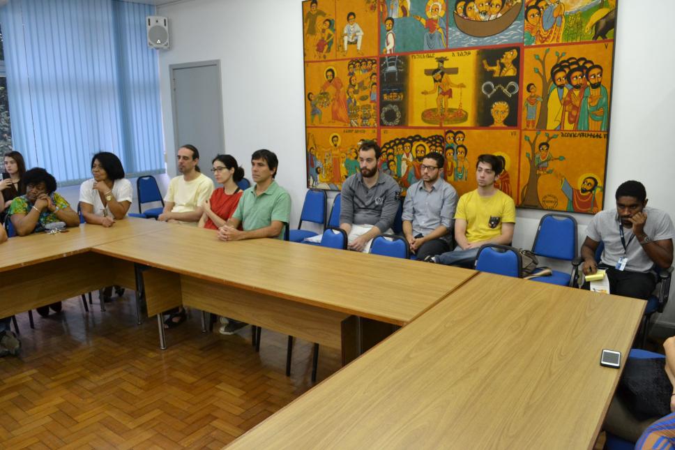 Professores dos departamentos premiados assistem à cerimônia.