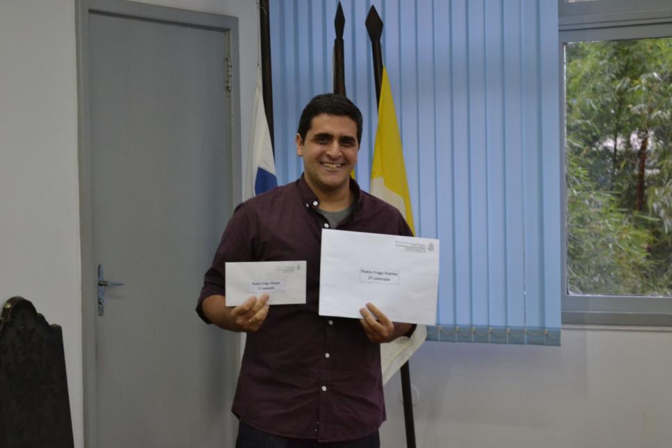O aluno Pedro Fraga Vianna com o seu prêmio.