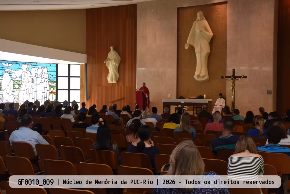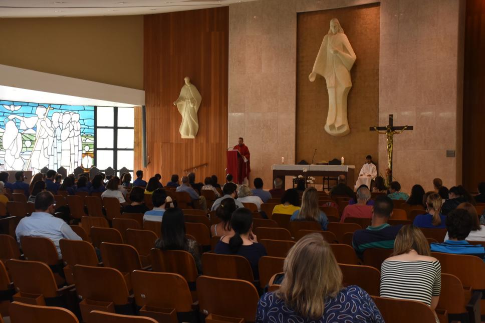 O público observa o Pe. Alexandre Paciolli durante a missa.