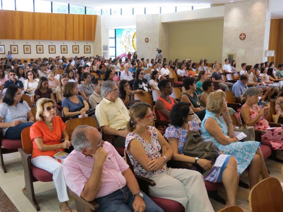 Alunos e professores na missa.
