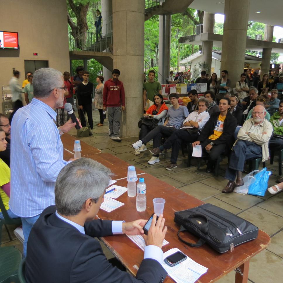Da esq. para dir.: deputado Gilberto Palmares (em pé) e o prof. Alessandro Molon (JUR)