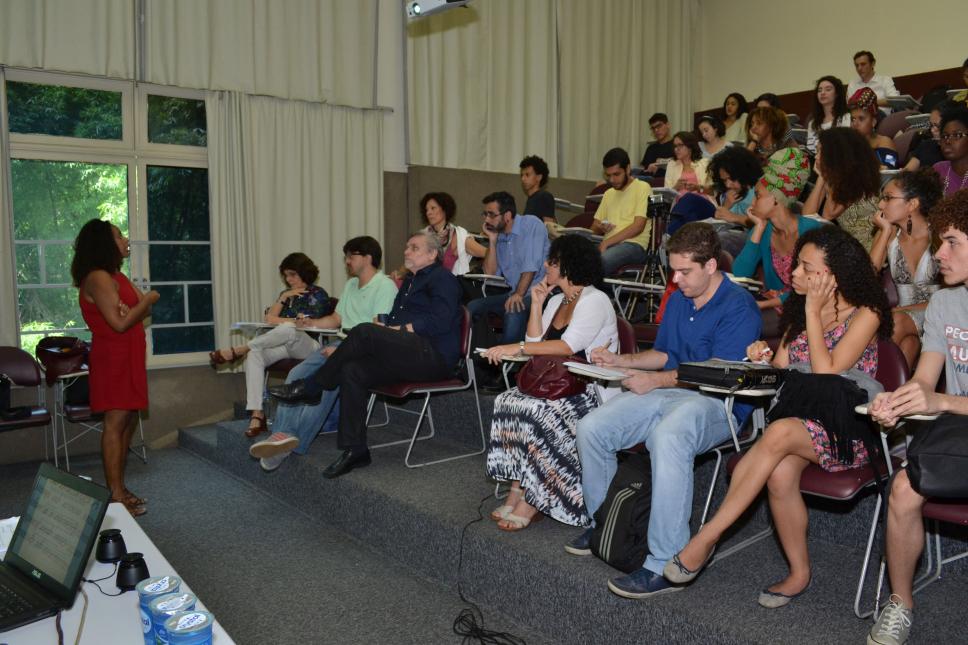 profa. Marcia Lima (USP), em pé de vestido vermelho; 1ª fila da esq. para direita: profa. Ângela Maria de Randolpho Paiva (CIS), n.i., prof. Ricardo Emmanuel Ismael de Carvalho (SOC)