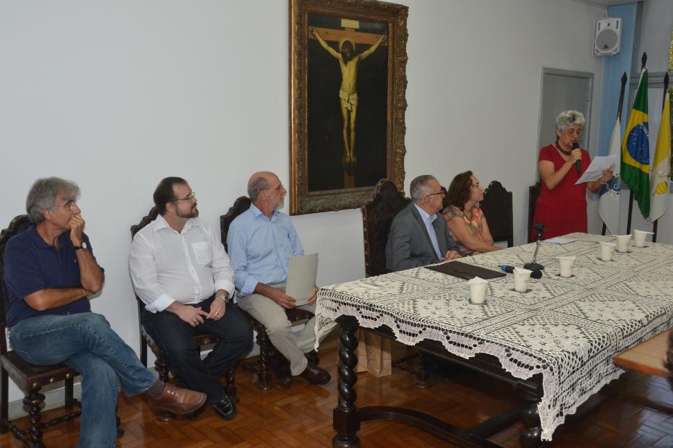 Da esq. para dir.: prof. José Ricardo Bergmann (CETUC, Vice-Reitor para Assuntos Acadêmicos), prof. Augusto César Pinheiro da Silva (GEO), prof. Rogério Ribeiro de Oliveira (GEO), prof. pe. Josafá Carlos de Siqueira S.J. (BIO, Reitor), profa. Andreia Clapp Salvador (SER) e a profa. Luiza Helena Nunes Ermel (SER)