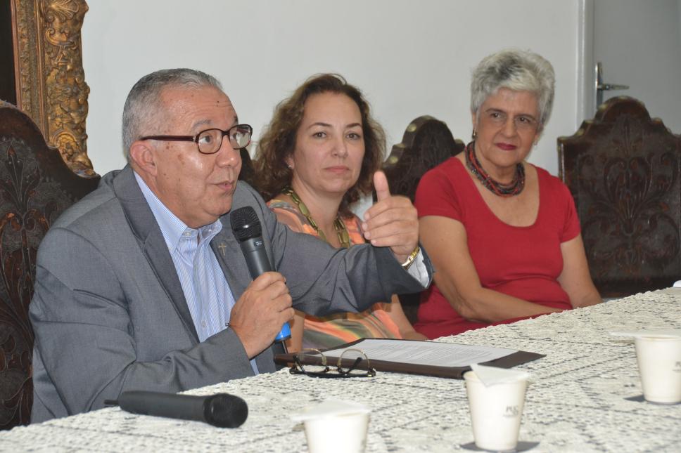 Da esq. para dir.: 1º prof. pe. Josafá Carlos de Siqueira S.J. (BIO, Reitor), 2ª profa. Andreia Clapp Salvador (SER), 3ª profa. Luiza Helena Nunes Ermel (SER)