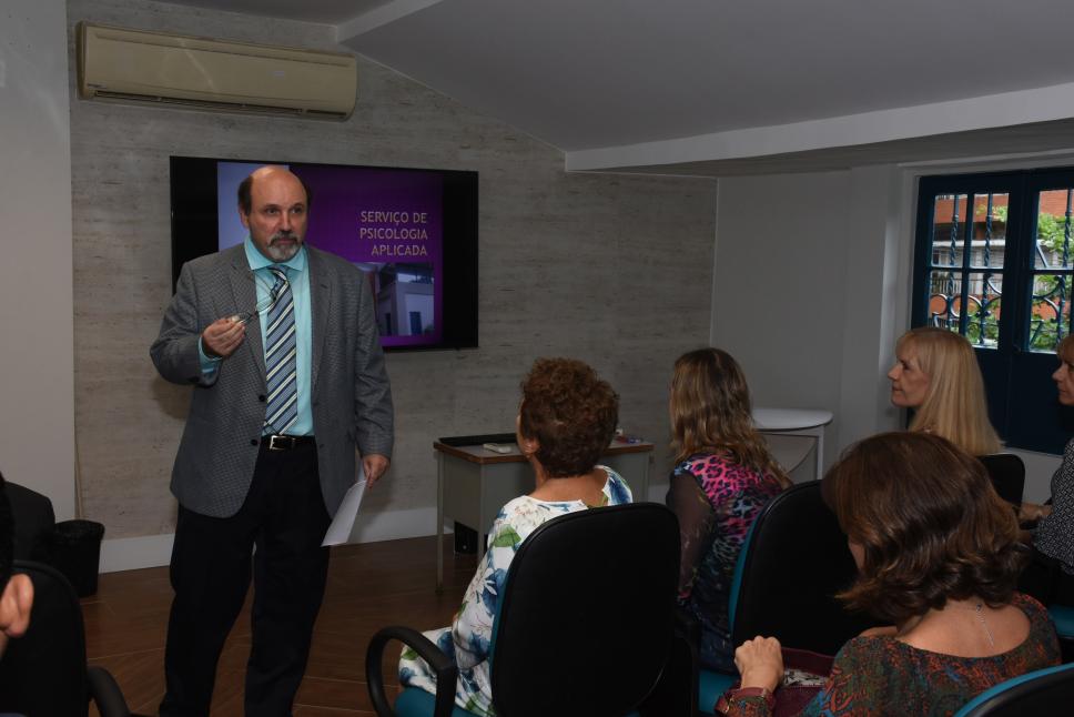 O professor Jesus Landeira-Fernandez apresenta o novo auditório do SPA.