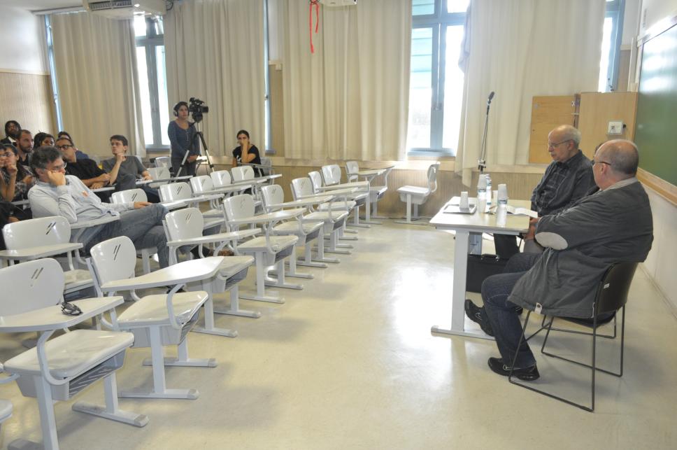 Sentado mais próximo da foto e em frente as cadeiras: prof. Antonio Edmilson Martins Rodrigues (HIS), mais distante da foto: prof. Francisco Falcon, na segunda fileira assistindo: Prof. Marcelo Gantus Jasmin (HIS)