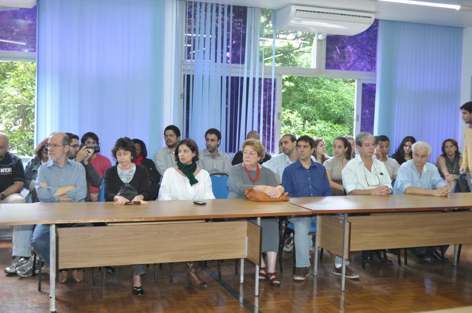 Professores, alunos e funcionários na cerimônia de posso de prof. Marco Antonio Villela Pamplona como Diretor do Departamento de História.