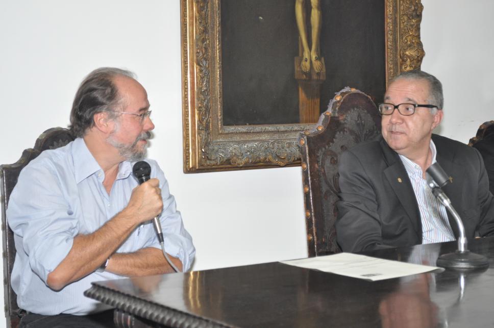Da esq. para a dir: prof. Marco Antonio Villela Pamplona(HIS); pe. Josafá Carlos de Siqueira, S.J. (reitor)