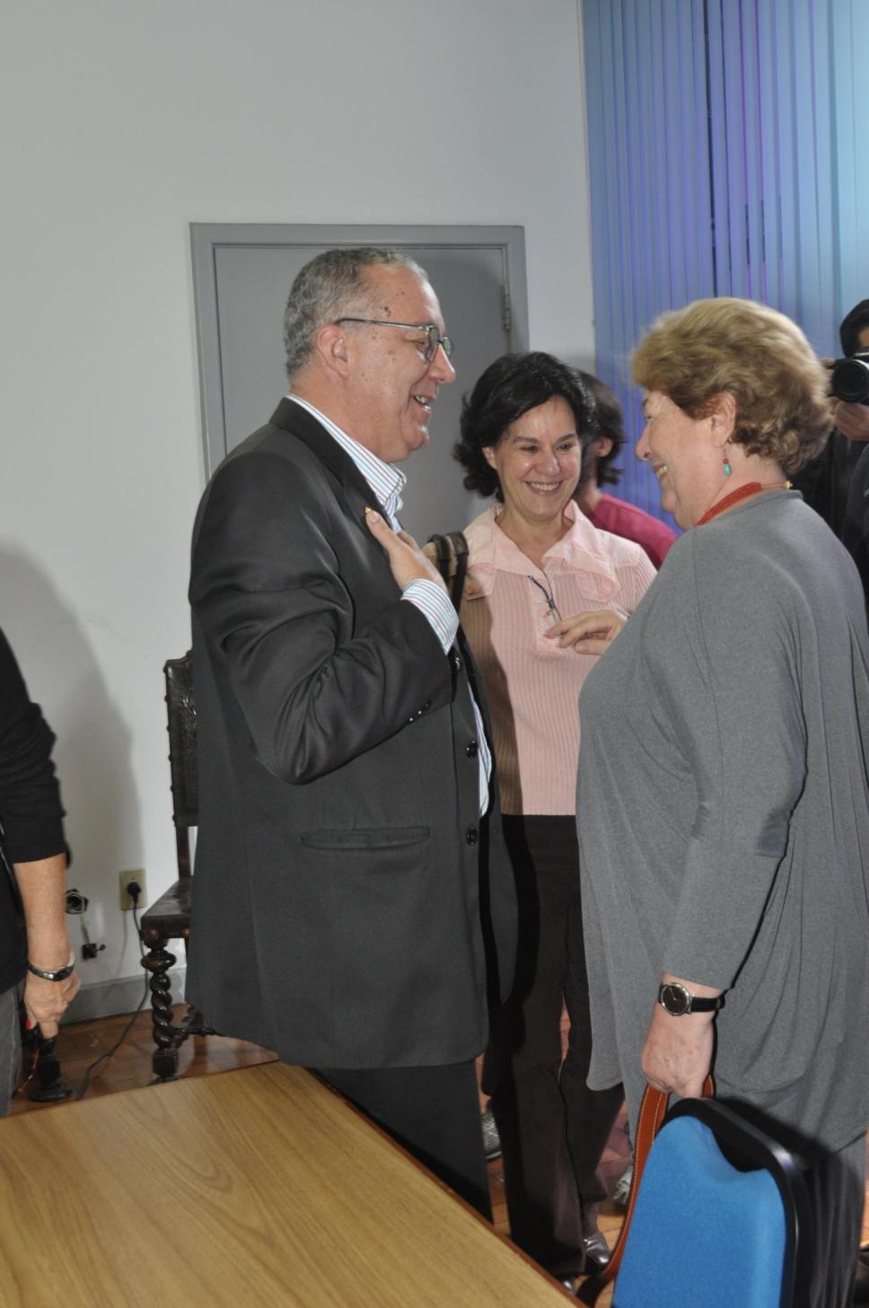 Da esq. para a dir.: pe. Josafá Carlos de Siqueira, S.J. (reitor); profa. Maria Tereza Chaves de Mello (HIS); profa. Margarida de Souza Neves (Núcleo)