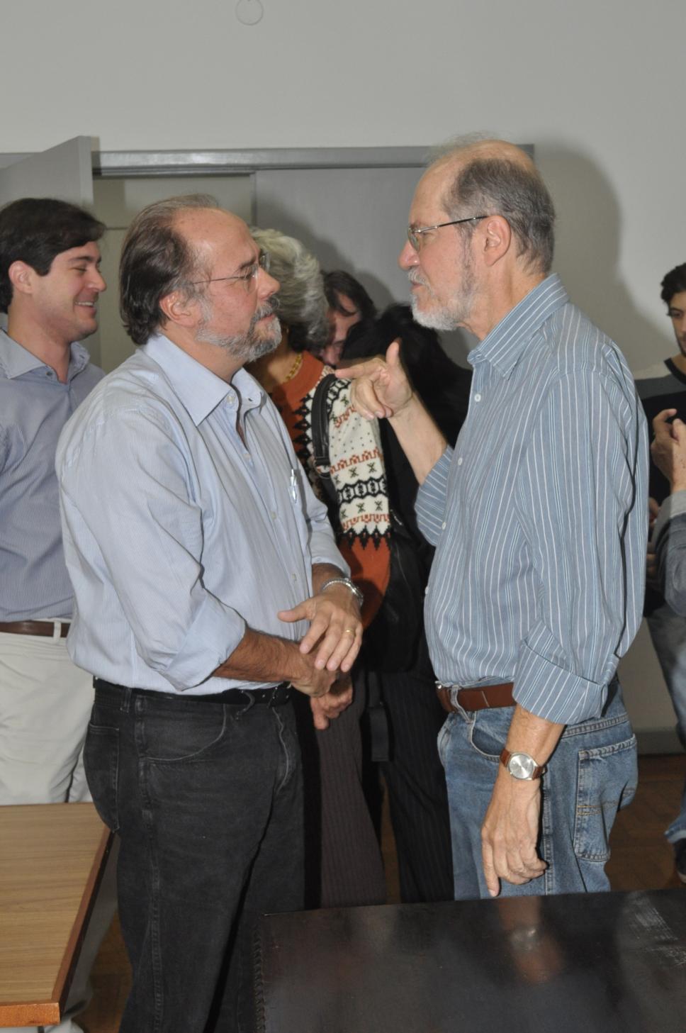 O prof. Ilmar Rohloff de Mattos conversa com o prof. Marco Antonio Pamplona após a cerimônia.