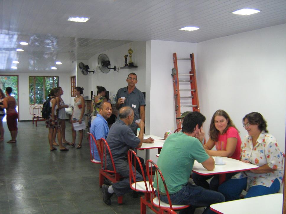 Novas instalações da AFPUC, nessa foto funcionários e alunos comendo e conversando.