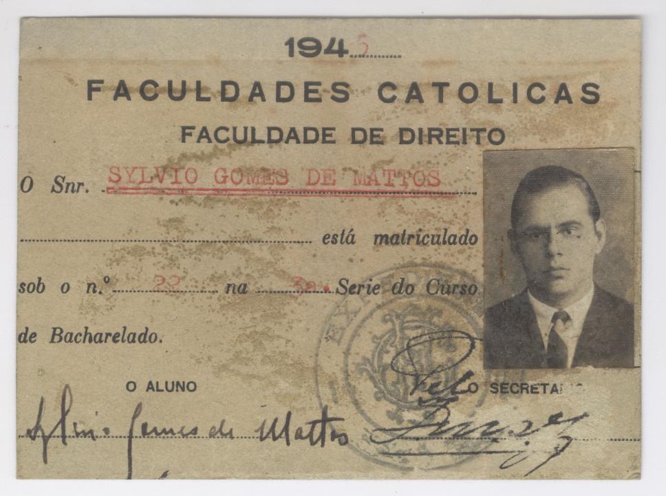 Ficha de matrícula de um aluno da Faculdade de Direito, com foto, carimbo e assinaturas.