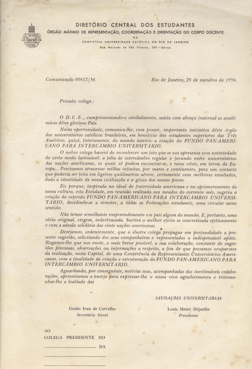 Comunicação do DCE sobre o fundo pan-americano para intercâmbio universitário.