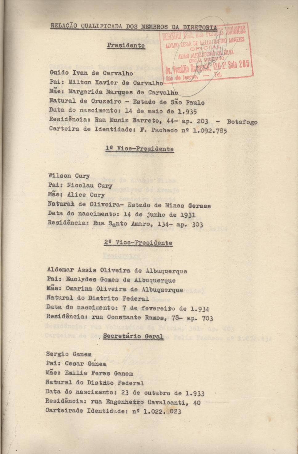 Continuação da certificação do registro civil de pessoa jurídica do Diretório Central dos estudantes, com a relação qualificada dos membros da diretoria.