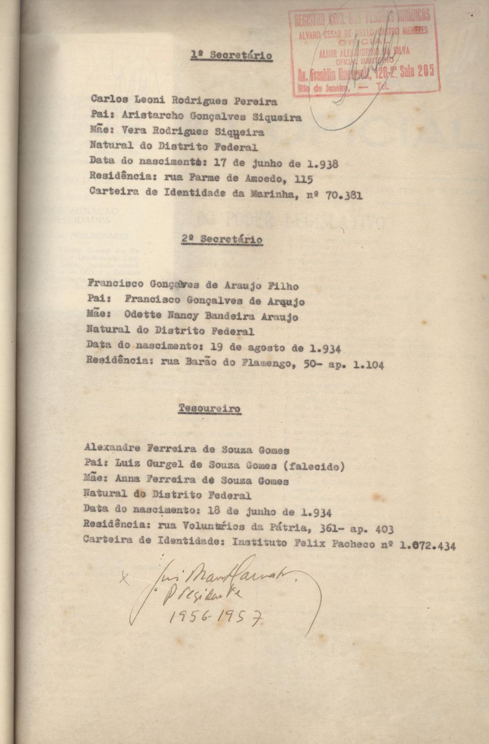 Continuação da certificação do registro civil de pessoa jurídica do Diretório Central dos estudantes, com a continuação da relação qualificada dos membros da diretoria.