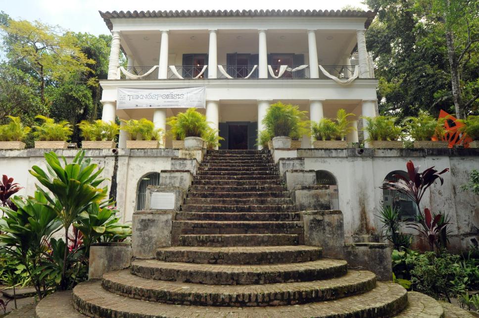 Fachada do Solar Grandjean de Montigny, com faixa do evento 'Teknóspoiésis'.