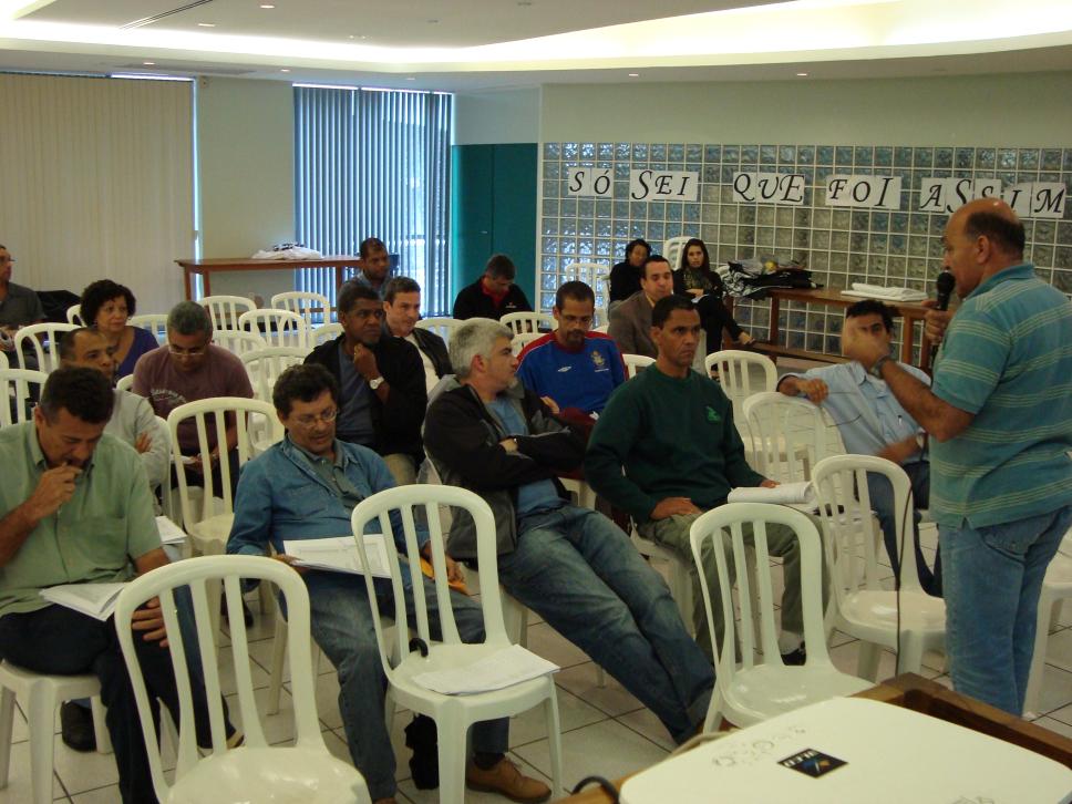 Funcionários da PUC em assembleia para a prestação de contas do ano.