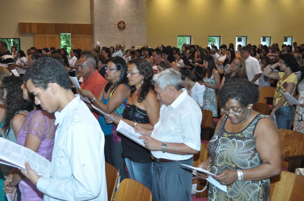 Alunos, professores e coordenadores do curso de Licenciatura em História a Distância na missa de formatura.