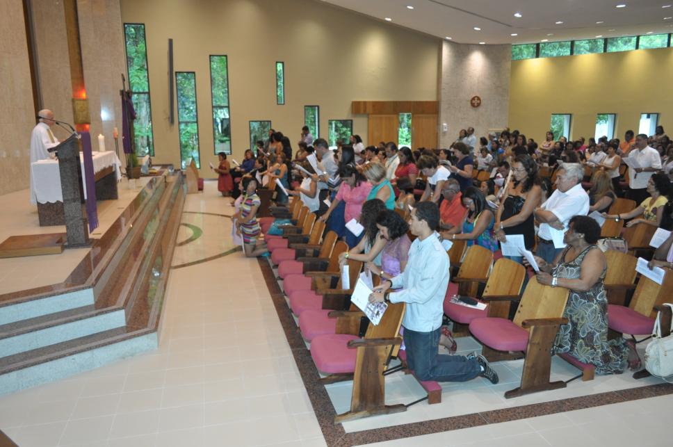 Alunos, professores e coordenadores do curso de Licenciatura em História a Distância na missa de formatura.