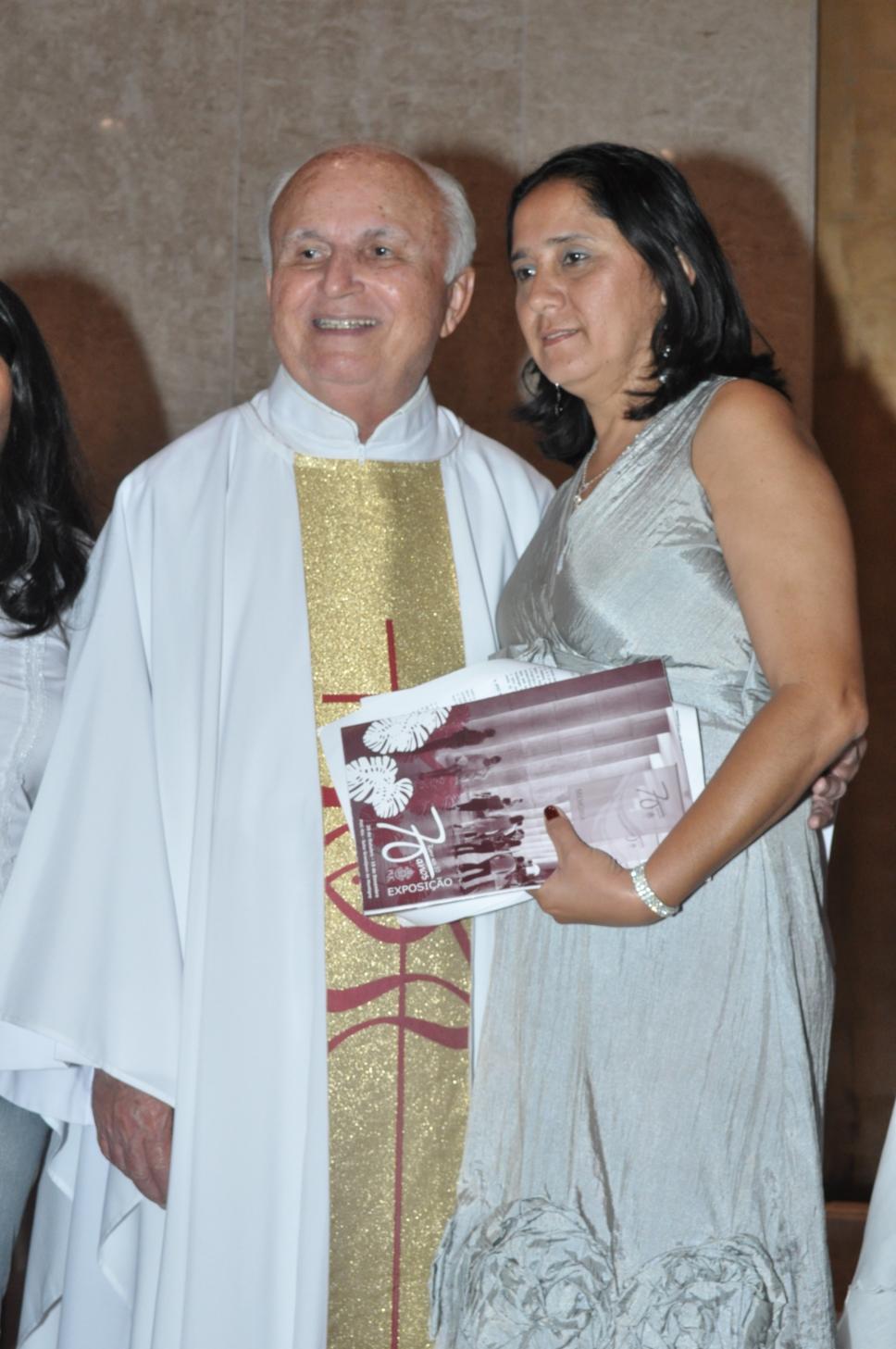 Aluna formanda com o padre Djalma, que celebrou a missa de formatura.