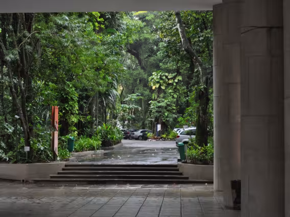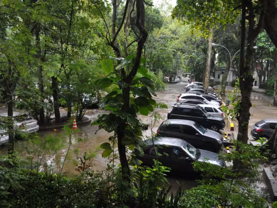 Fotos tiradas no Campus Gávea da PUC-Rio durante uma chuva forte