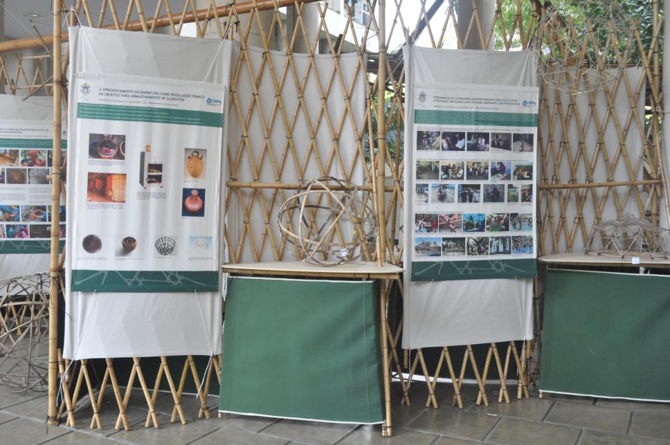 Exposição sobre o aproveitamento de barro cru como regulador térmico em objetos para armazenamento de alimentos.