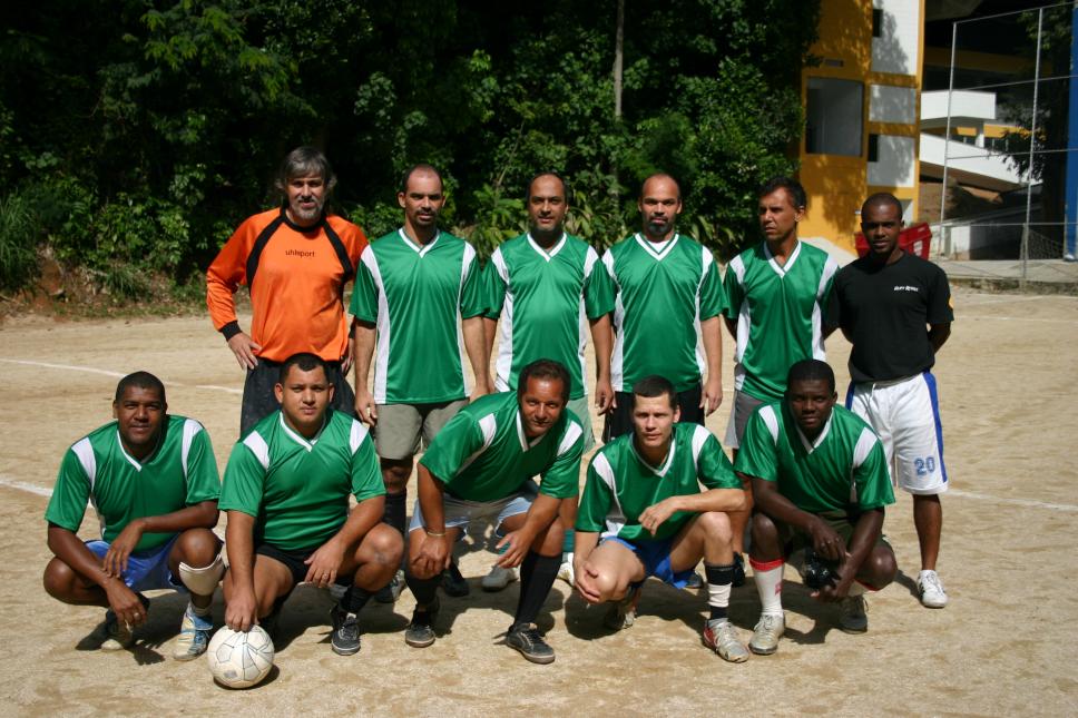 Um dos times de futebol na final do campeonato da AFPUC.