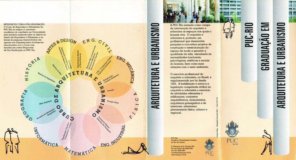 Divulgação do Curso de Graduação em Arquitetura e Urbanismo, então sob a responsabilidade acadêmica dos Departamentos de Artes e Design e de Engenharia Civil. Mandala com as relações (interfaces) com os Programas de Pós-graduação da PUC-Rio.