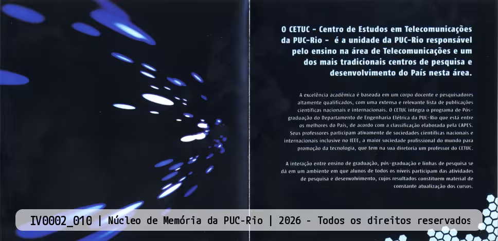 Apresentação do Centro de Estudos em Telecomunicações (CETUC). Integração entre graduação, pós-graduação e pesquisa.