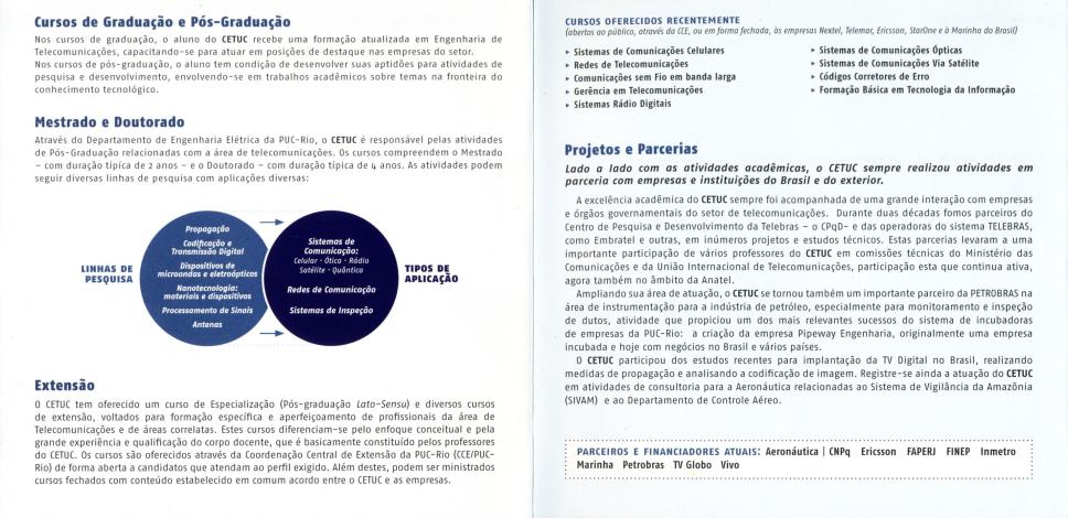 Apresentação do Centro de Estudos em Telecomunicações (CETUC). Relações entre graduação e pós-graduação, cursos de extensão e os projetos e parcerias.