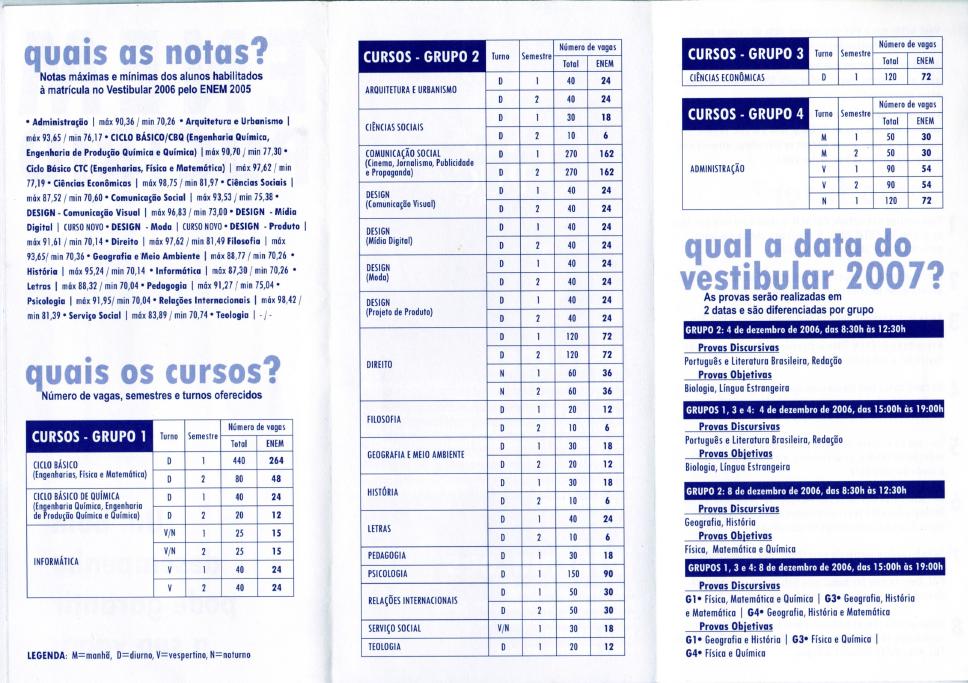 Divulgação de informações sobre o ENEM, que começava a ser utilizado pelas universidades como forma de acesso alternativa aos vestibulares. Notas mínimas necessárias e vagas por curso reservadas aos candidatos via ENEM. Datas do vestibular 2007.