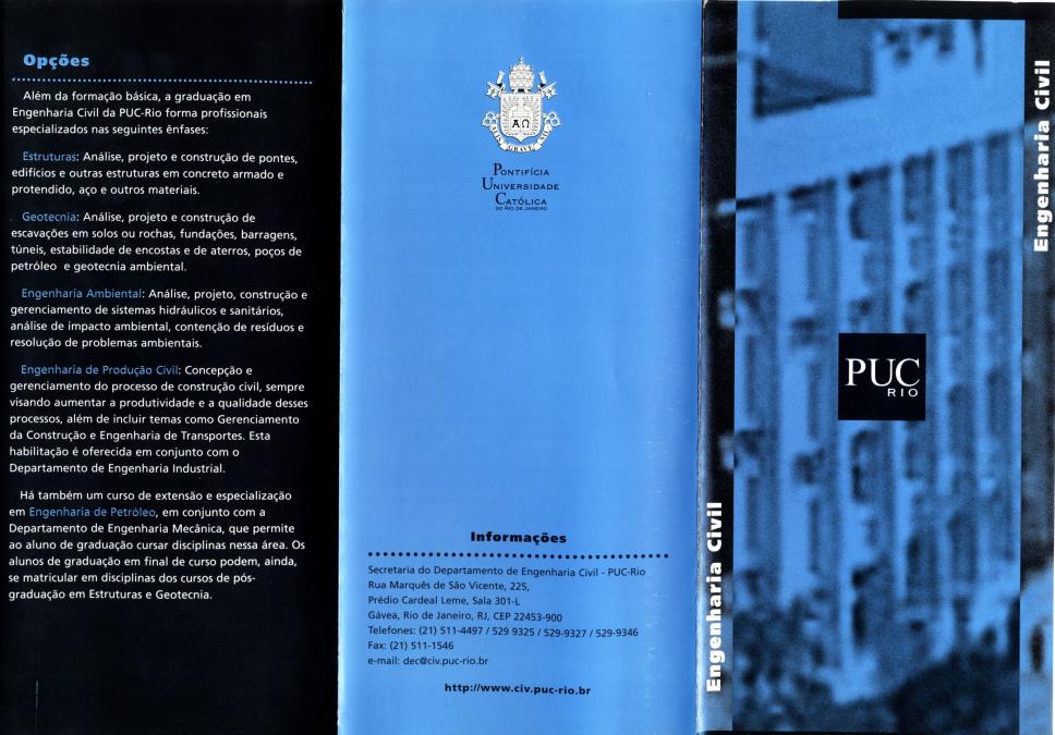 Apresentação do curso de Engenharia Civil. Opções: Estruturas, Geotecnia, Ambiental, Produção e Petróleo. Endereço.