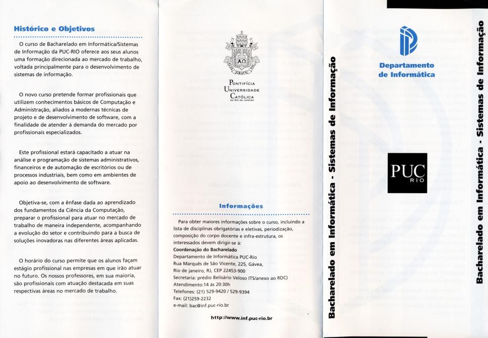 Apresentação do curso de Sistemas de Informação do Departamento de Informática. Histórico e objetivos, endereço.