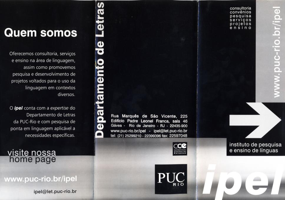 Apresentação do IPEL - Instituto de Pesquisas e Ensino de Línguas. "Quem somos". Endereço.