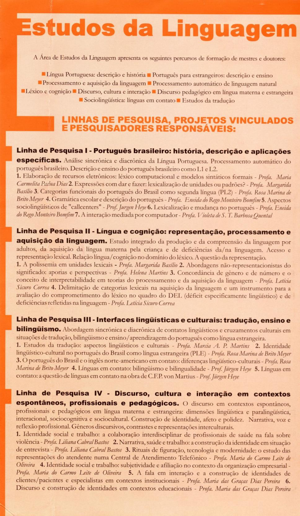 Apresentação dos programas de pós-graduação do Departamento de Letras. Área de Estudos da Linguagem e suas linhas de pesquisa.