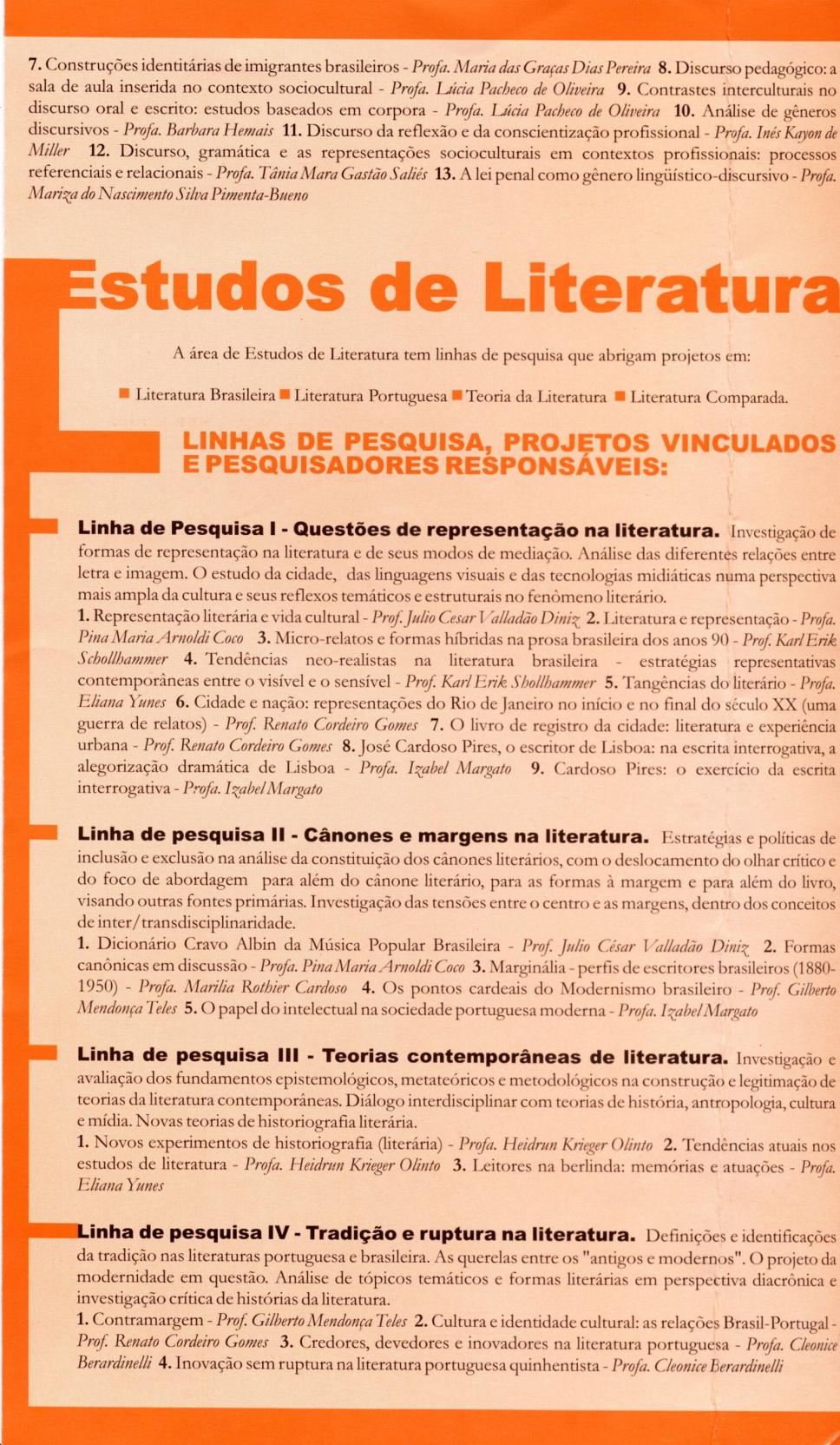 Apresentação dos programas de pós-graduação do Departamento de Letras. Área de Estudos de Literatura e suas linhas de pesquisa.