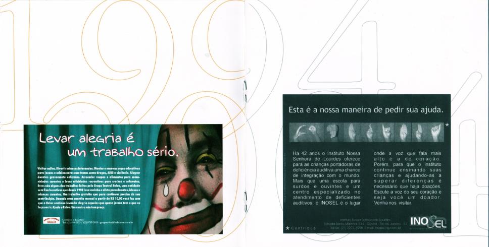 Folder sobre o Núcleo de Criação do Projeto Comunicar. Campanhas produzidas ao longo dos anos. Grupo Teatral Reluz e Instituto Nossa Senhora de Lourdes.