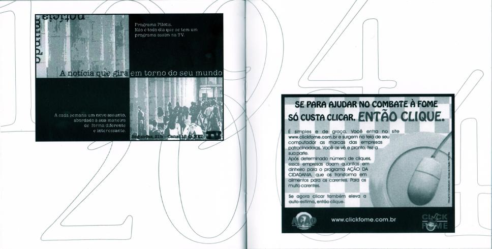 Folder sobre o Núcleo de Criação do Projeto Comunicar. Campanhas produzidas ao longo dos anos. TV PUC e Click Fome.