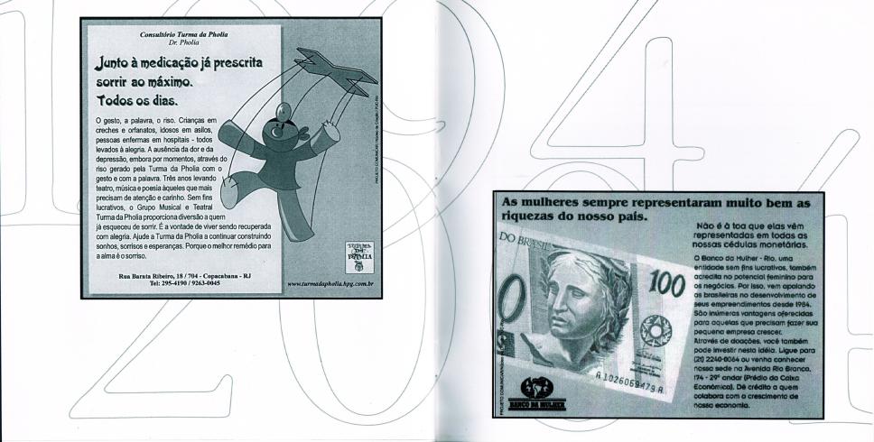 Folder sobre o Núcleo de Criação do Projeto Comunicar. Campanhas produzidas ao longo dos anos. Turma da Pholia e Banco da Mulher.