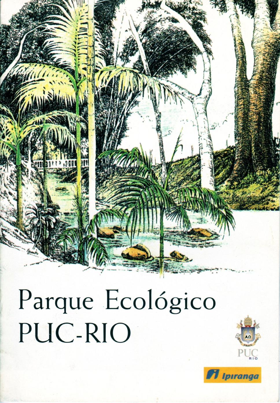 Parque Ecológico da PUC-Rio - Guia de visitantes. Capa com desenho do pe. J. Fernandes S.J.. Patrocínio Ipiranga.